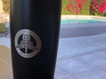 The MFFA thermal mug keeps beverages hot or cold. It only comes in black, like your ops!